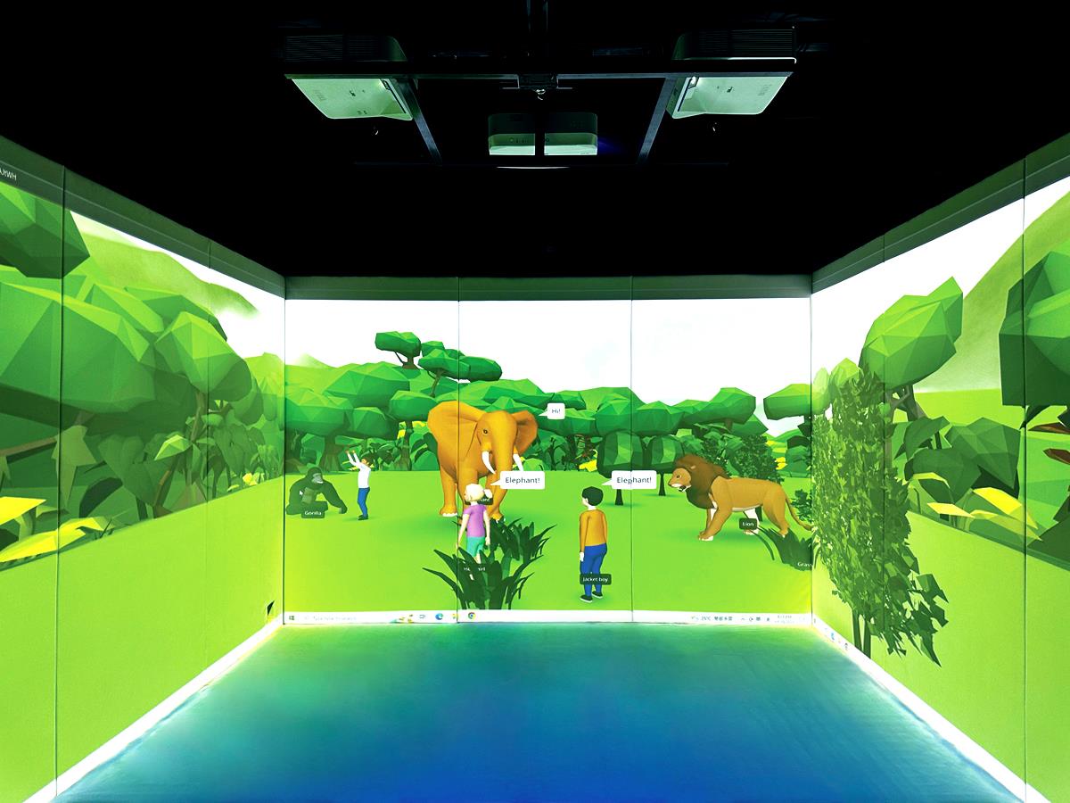 利用互動沉浸式VR大屏幕投影,展示同學的編程作品,讓學校在開放日、活動日向家長,及VIP展示學生的作品,和學校在STEAM教育的發展。